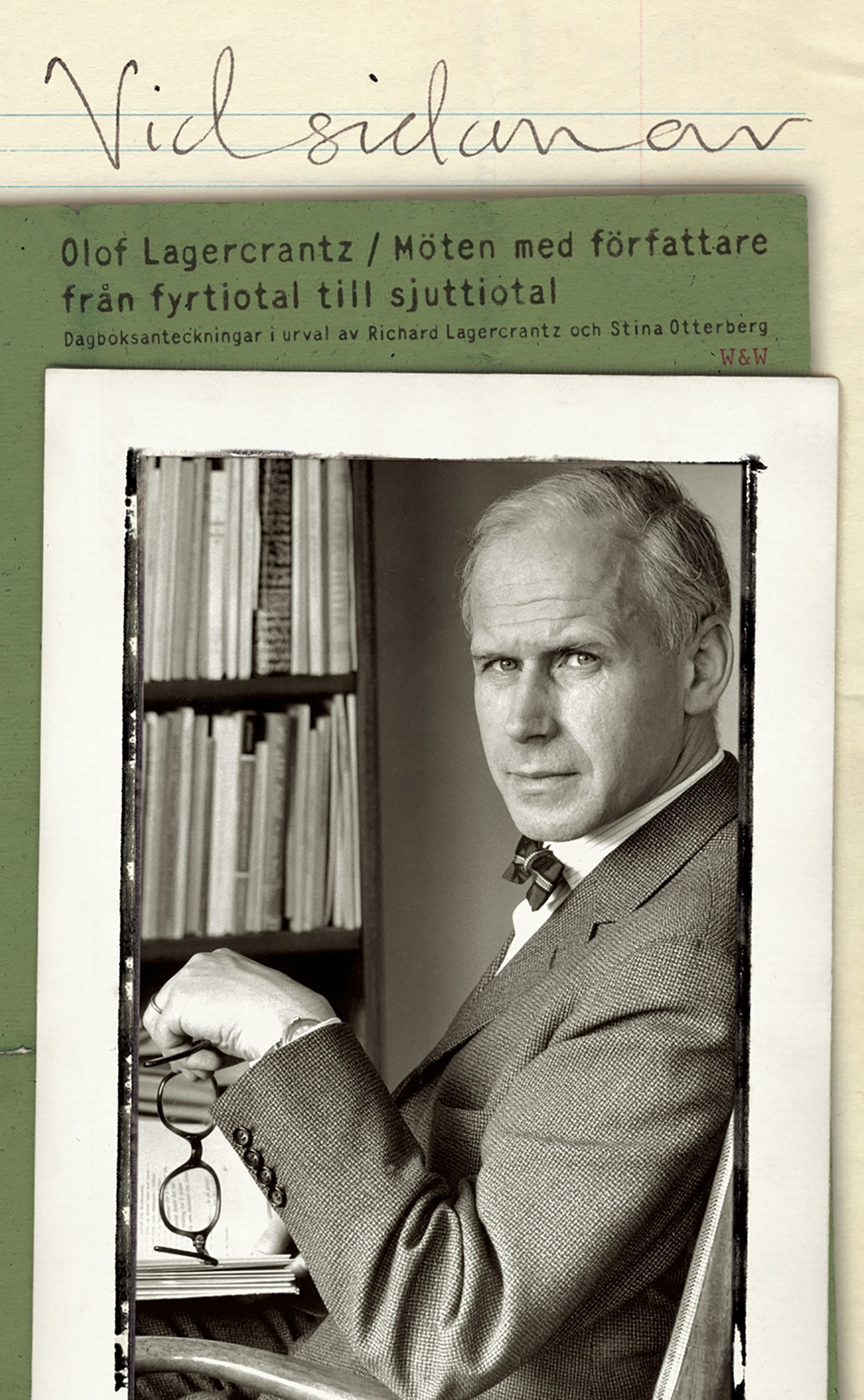I Vid sidan av har litteraturvetaren Stina Otterberg och Richard Lagercrantz gjort ett urval ur dagboken. De har valt sådant Olof Lagercrantz skrev om författarkollegor och vänner och varvat anteckningarna med den kritik han samtidigt skrev om dem i DN. Där finns t.ex. skrivningar om Karin Boye, Artur Lundkvist och Maria Wine, Johannes Edfelt, Erik Lindegren, Ulf Linde och Pär Lagerkvist.
